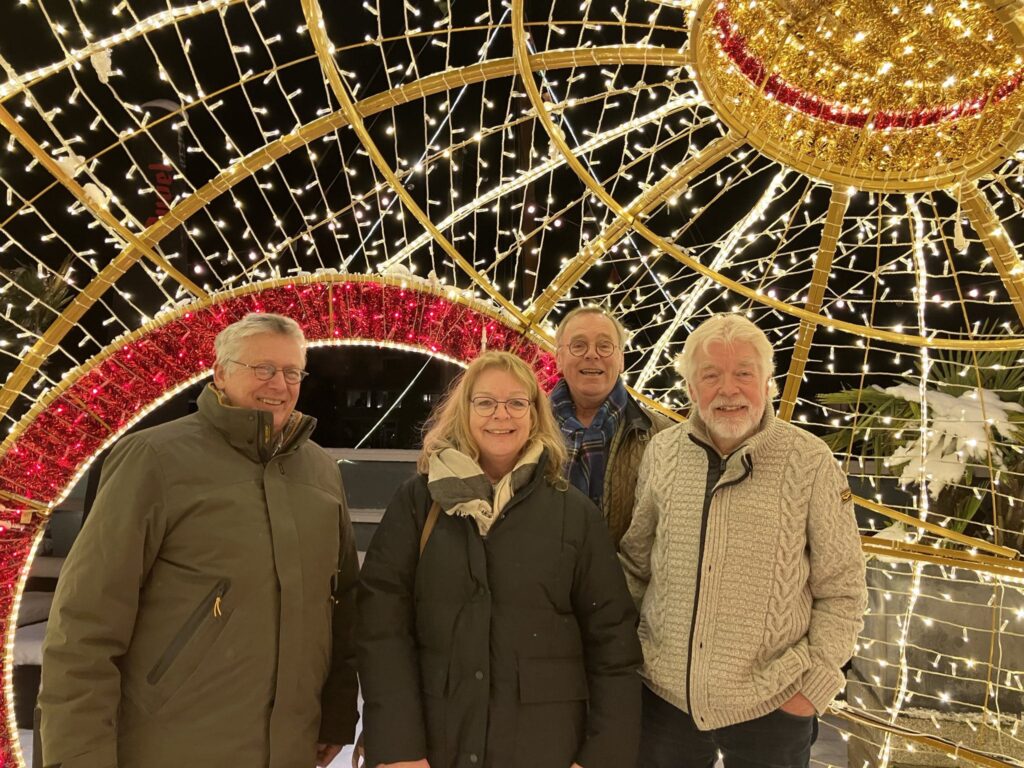 Daaronder een prachtige winterse foto, genomen in januari 2026 met Jack, Marian, Paul en Henk. Henk Meijer is sinds 2024 onderdeel van het bestuur van Stichting Zingen met Zorg Flevoland.